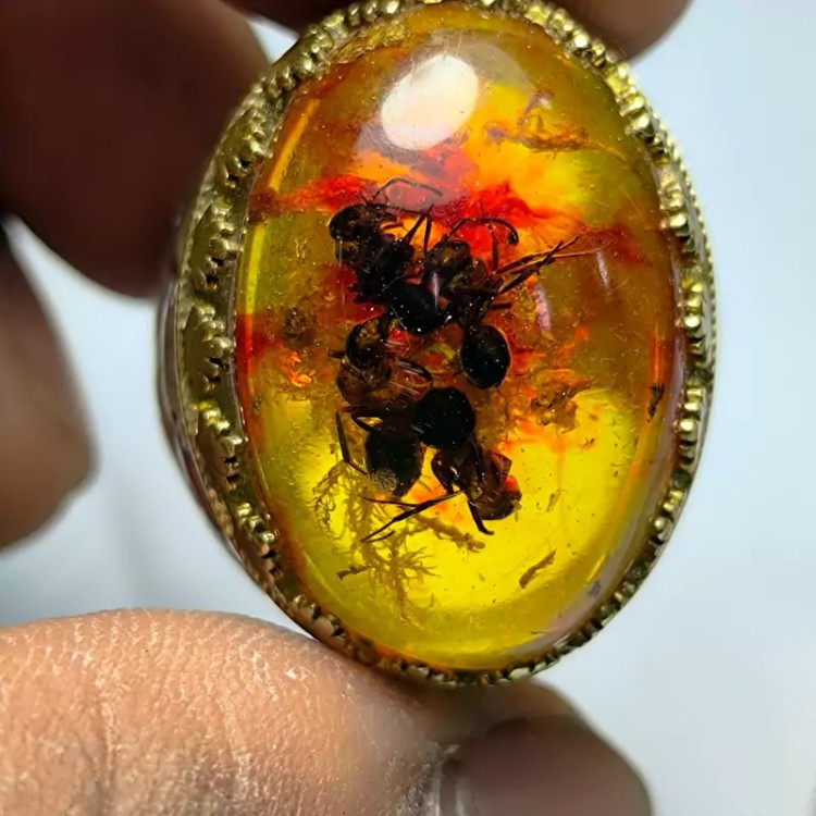 سنگ کهربا حشره دار صنعتی رکاب نقره با عیار بالا وزن محصول 15.08 گرم